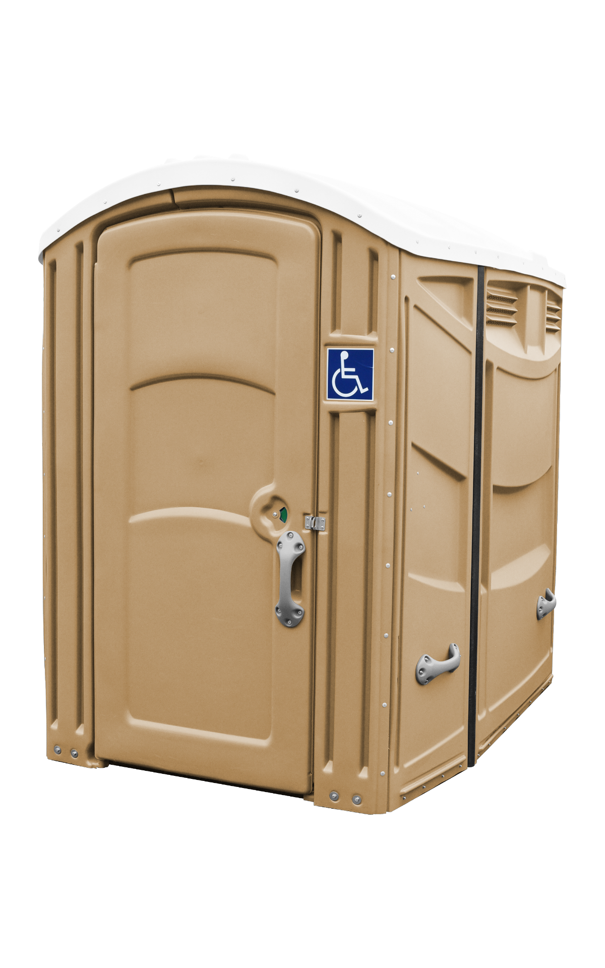 These portable toilets are available with and without sinks. We typically have both green and purple units to better match your event needs.